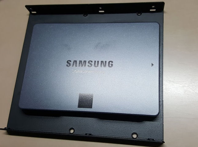 SSDは2.5インチでデスクトップPCのHDDマウントより小さいので、3.5インチ変換用のブラケットを合わせて購入しています。